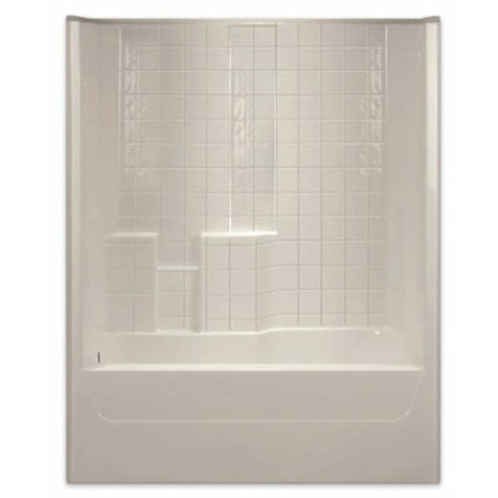 - Tub shower with four inch simulated tile pattern, soap dishes and acrylic towel bar