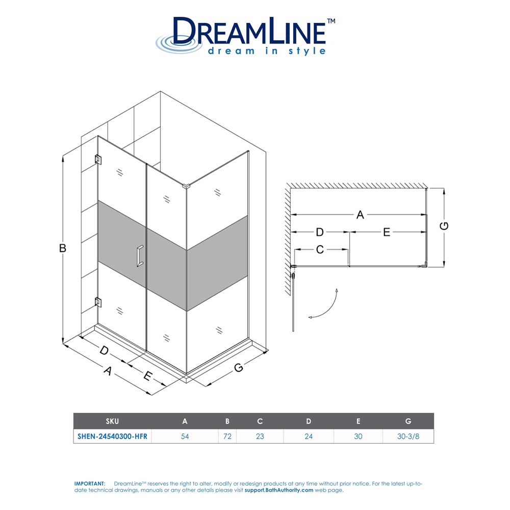 DreamLine Unidoor Plus 72" High x 54" Wide x 30-3/8" Deep Hinged Frameless Shower Enclosure with Frosted Glass