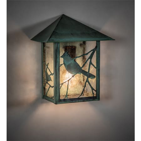 branches with song bird silhouettes accent this handsome American Craftsman lantern style wall sconce. The fixture is handcrafted in the USA by Meyda artisans.