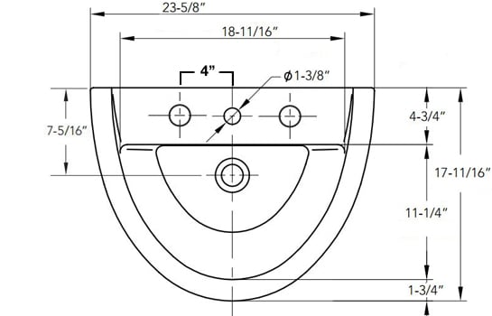 - Basin Depth: 6-11/16" (measured from center of basin to the rim)