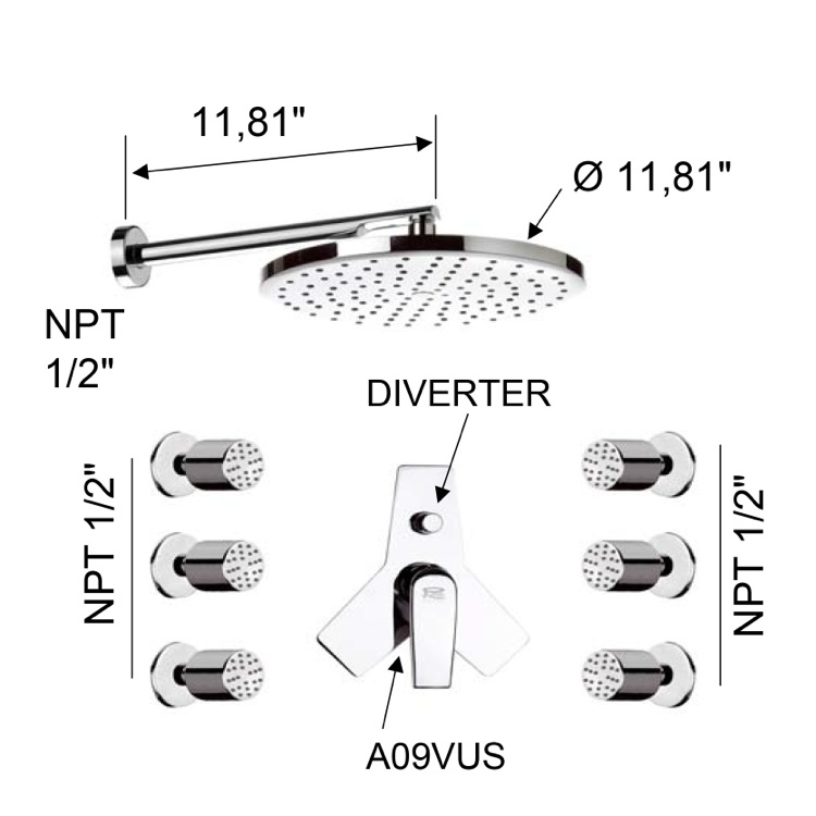 - Designed to easily install with standard 1/2" wall supply elbows or shower arm diverters