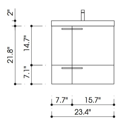- Width: 23-2/5" (measured from left most to right most part on vanity cabinet)