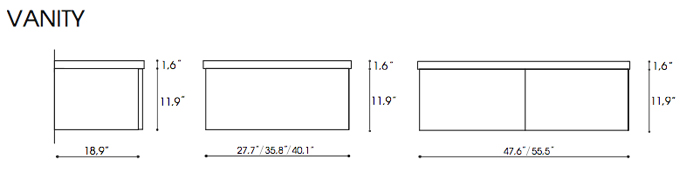 - Cabinet Depth: 19" (measured from back most to front most part on vanity cabinet)