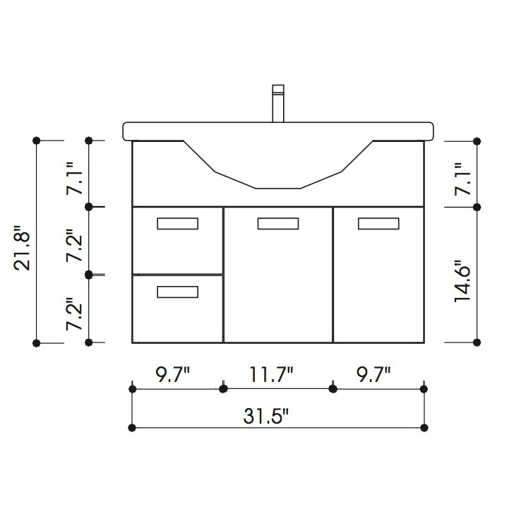 - Overall Width: 31-3/10" (left most to right most part on vanity cabinet)