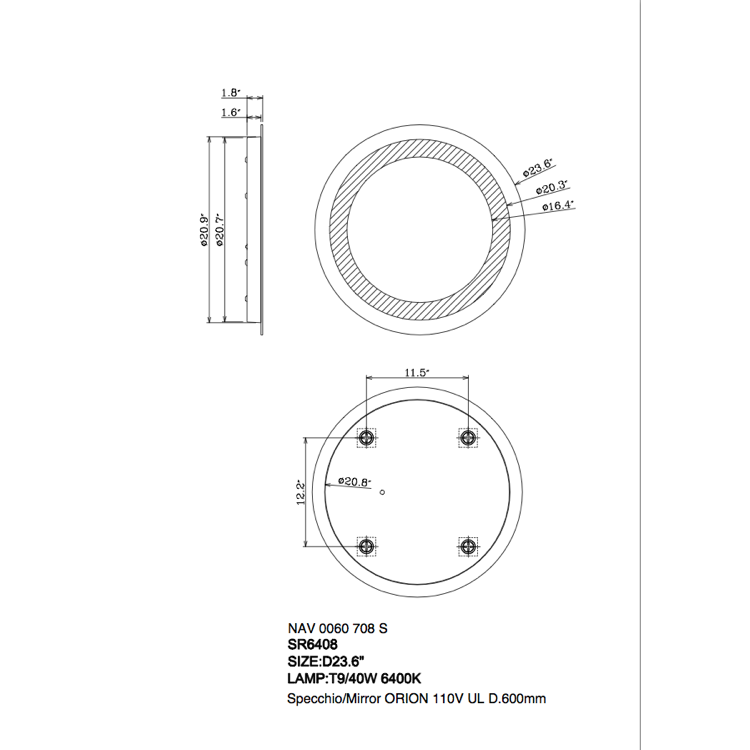 - Depth: 1-4/5" (measured from back of the mirror to front)