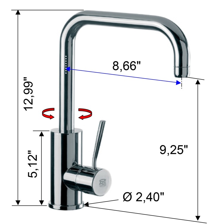 - Spout Height: 8-11/16" (measured from center of faucet base to center of faucet outlet)