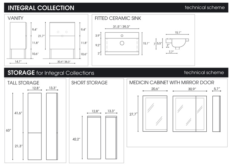 - Cabinet Depth: 14-3/4" (measured from back most to front most part on vanity cabinet)