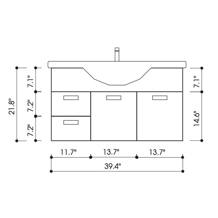 - Width: 39-2/5" (measured from left most to right most part on vanity cabinet)