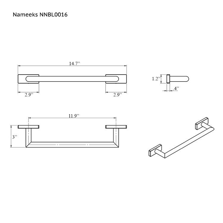 Nameeks Boutique Hotel 15" Single Towel Bar