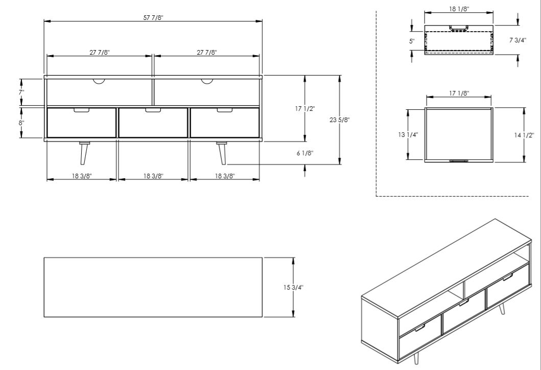 - With slightly tapered legs, this 58-inch TV stand features a mid century modern silhouette to complement your home’s aesthetic