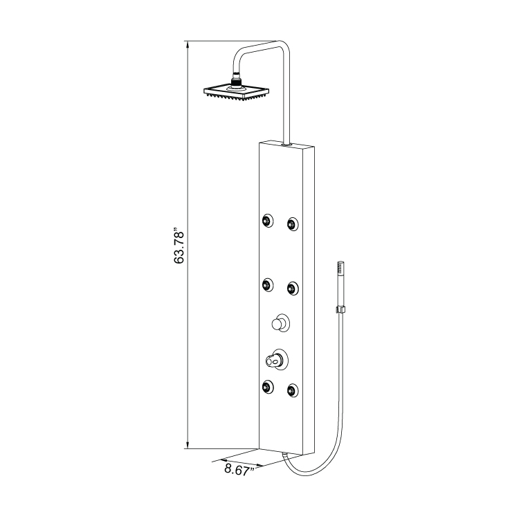 - Shower Panel Width: 8-11/16"