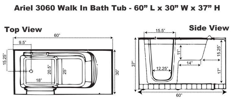 - Overall Height: 37" (measured from the top of tub rim to the bottom of basin)